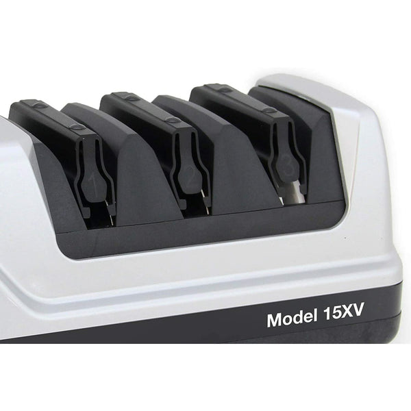 - THREE STAGES: 3-Stage EdgeSelect sharpening system for optimum versatility in providing the perfect edge for each cutting task. Stages 1 and 2 are plated with 100-percent diamond abrasives to sharpen and hone the edge and stage 3 uses a patented flexible abrasive system to polish and help prolong the life of serrated knives
